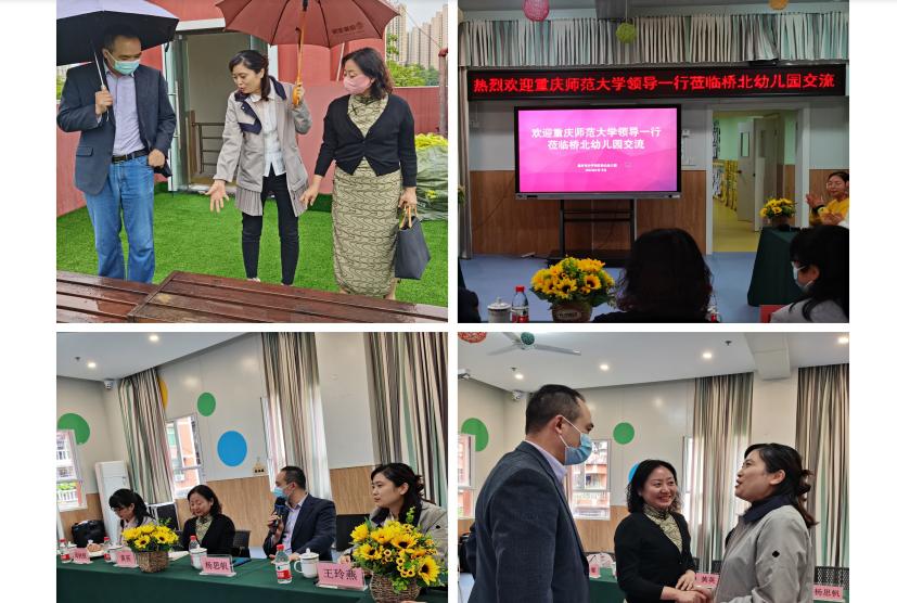 为加强毕业实习工作管理,提高师范生毕业实习教学质量,加强高校与实习基地的交流与协作,2022年5月18日下午,学院杨思帆副院长、学前教育系黄英主任、辅导员周树银老师组成实习巡视工作组,走访沙坪坝区桥北幼儿园和沙坪坝区实验幼儿园,开展对2019级学前专业学生实习的现场巡视,看望实习学生,并与实习园所领导与老师座谈交流。