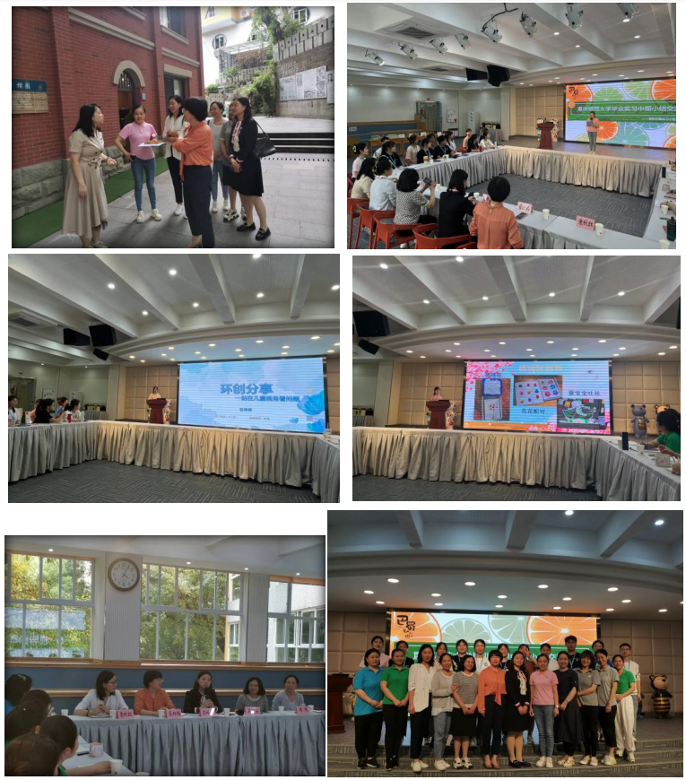 下午,学院党委副书记李林霖带队,学前教育系主任蔡红梅、副系主任袁秋红、学前系李琴老师和吴晓云老师一行5人,前往巴蜀幼儿园实地调研,参加了幼儿园组织的毕业实习中期小结交流报告会。幼儿园分管实习副园长、教研主任、指导老师和12名实习同学参加交流会。会上,同学们进行了实习中期小组汇报和个人汇报,充分展示了巴蜀幼儿园环境创设和材料投放,特别是自己在进行环创过程中的制作成果和收获感悟,表达了对巴蜀幼儿园和实习指导老师们的感谢。随后指导老师进行了点评,肯定了同学们认真负责的态度和善于思考动手的能力,同时提出期望。最后学院领导和老师进行总结发言,对巴蜀幼儿园提供高质量的实践平台和指导老师们的指导帮助表示感谢,期望同学们珍惜实习机会,延续重师百年幼教的精神,主动请教学习,把巴蜀幼儿园教师们在学前教育领域的引领作用学好、悟透、践行。