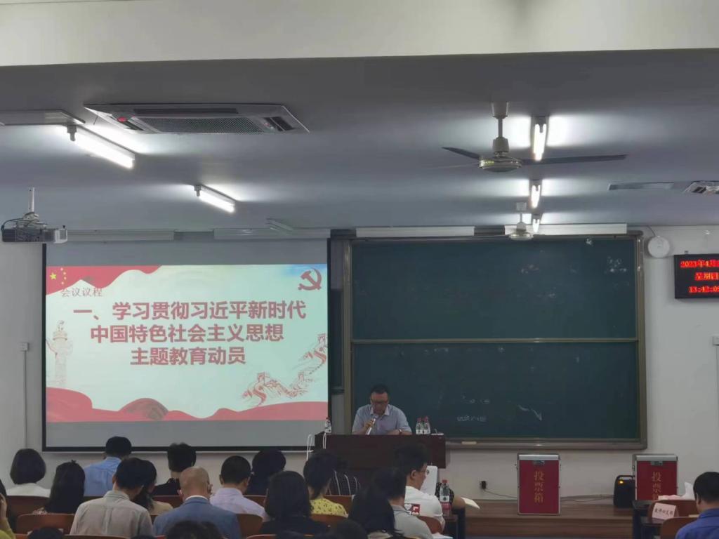 党委在砺志楼T2412召开党员大会安排部署主题教育工作。学院党委书记罗庆主持会议并作动员讲话,学院党政班子成员、全体党员师生共计237人参加会议。