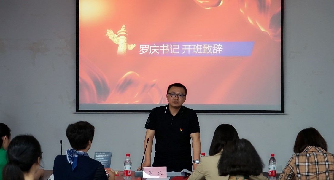 党委书记罗庆为读书班开班致辞并授牌。罗书记首先对青年同志表达了节日问候,再次强调了学习贯彻习近平新时代中国特色社会主义思想主题教育的重大意义。其次,罗书记介绍了本次读书班的情况:学院党委严格按照学校相关要求,在重点抓好处级领导干部及党委中心组理论学习的基础上,在教工一支部、研究生三支部、本科生支部三个样板支部开展读书班试点,通过示范支部领头学、书记带头学,党员师生人人学,采取定期集中学、个人随时学、专题研究与分组讨论相结合的方式,引导和带动全学院的主题教育学习,营造爱读书、读好书、善读书的浓厚氛围。