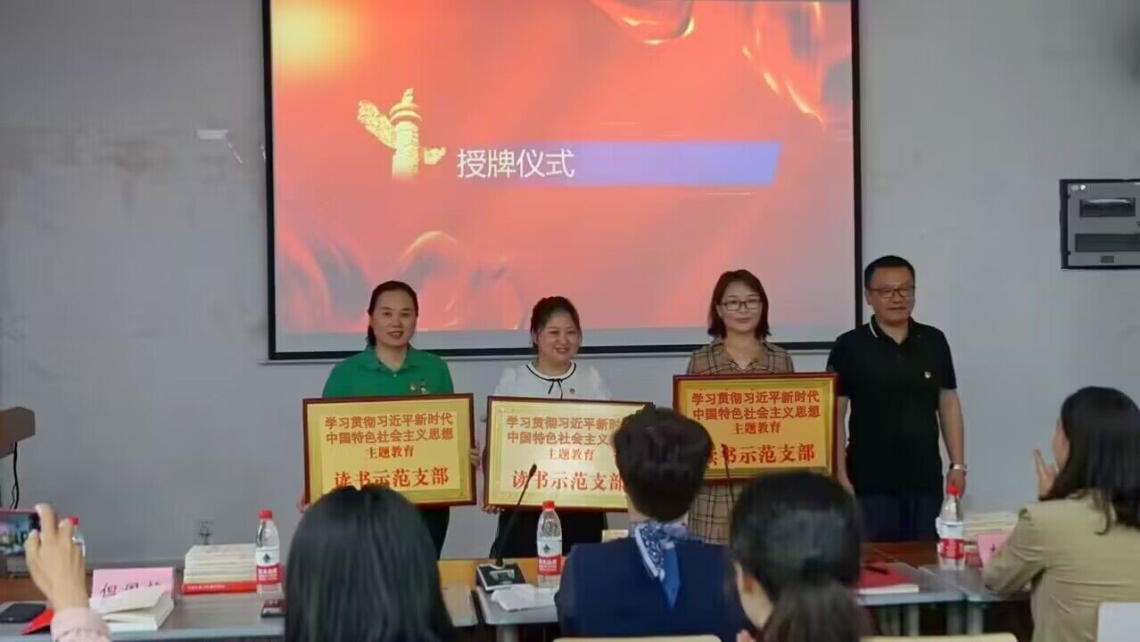 授牌仪式后,罗庆书记、朱桂琴院长、李林霖副书记分别向三个读书示范支部赠书,并与全体与会同志一起观看由教工一支部谭雪莲老师、研究生三支部、本科生支部学生代表带来的诗歌朗诵《青春之歌--青春万岁》。