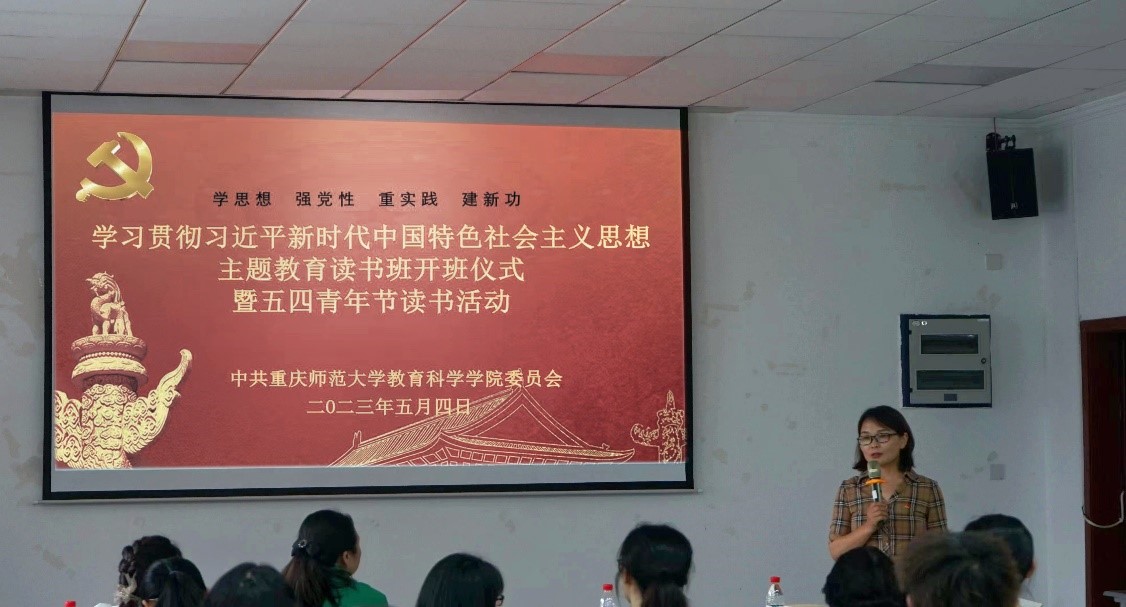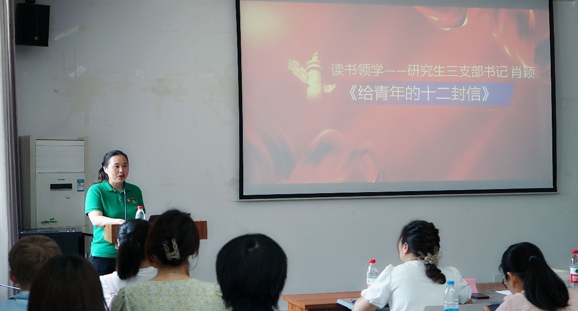 活动第二部分,由学院三个样板支部书记领读领学,开启五四青年节集体读书活动。研究生三支部书记肖颖领学了朱光潜《给青年的十二封信》(第二封信:谈动);本科生支部书记但国艳领学了《习近平的七年知青岁月》(习近平在梁家河从来没有放弃读书和思考);教工一支部书记刘小红领学了《习近平关于调查研究论述摘编》(第一部分:调查研究是我们党的传家宝,是做好各项工作的基本功)。