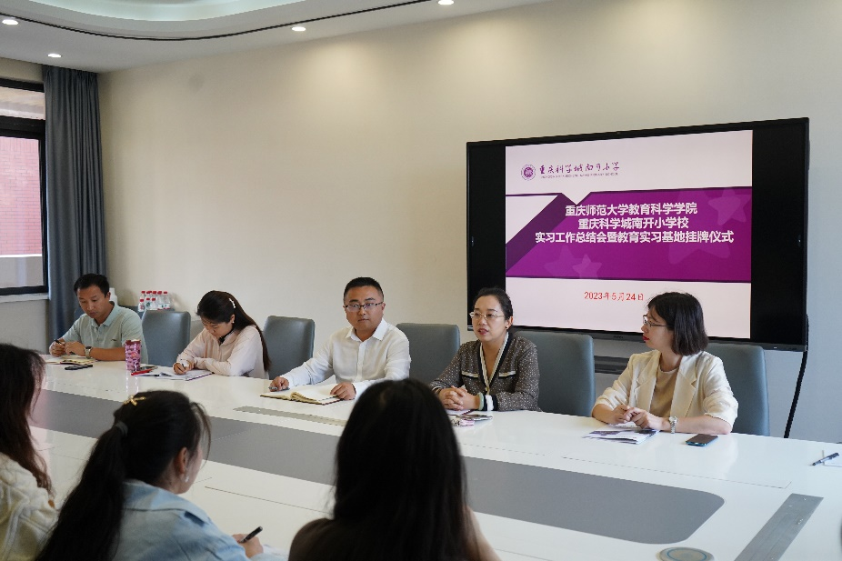实习工作总结会暨教育实践与就业基地挂牌仪式在重庆科学城南开小学校顺利举行。重庆科学城南开小学校党支部书记、校长陈伟杰,avcar