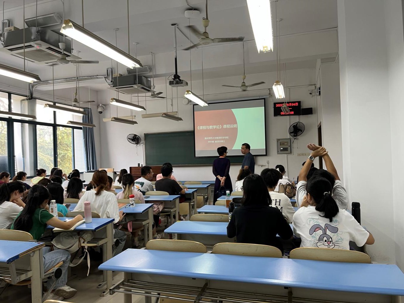 2023年9月4日,学领院导罗庆、朱桂琴、李林霖、魏勇刚、杨思帆分别对各个教学地点进行新学期第一天的教学秩序检查。