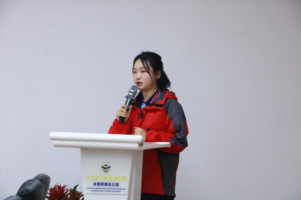 2019级学前教育专业校友、成都市二十一幼儿园教师何汶澐作为在职教师代表发言,表达了对母校的感恩和感谢;2024届毕业生唐心语、李秀斌作为应届毕业生代表,表达了参观二十一幼儿园的体,也为学院努力为学生拓展优质就业岗位表达了谢意。座谈交流会在愉快轻松的氛围中圆满结束。
