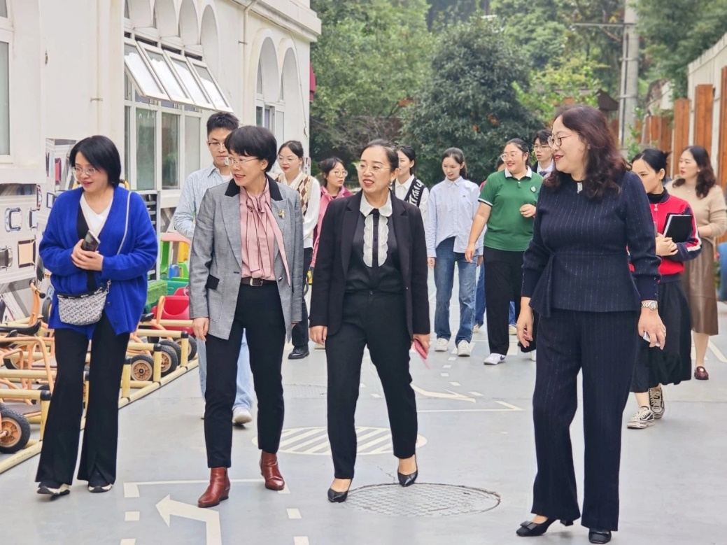 16日下午,伍雪辉一行来到成都市北京第二外国语学院附属幼儿园,在园长刘春及行政团队的带领下参观了成都市北二外的办学环境。