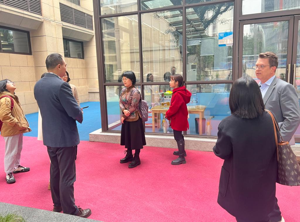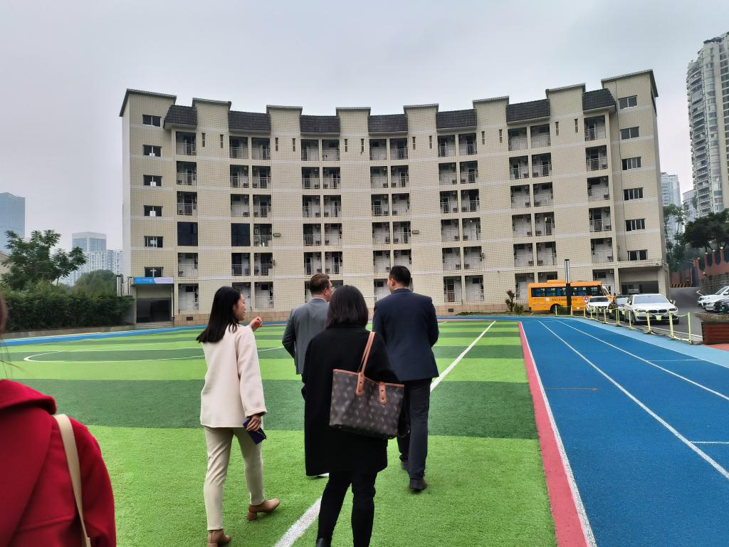师生的到访表示诚挚的感谢,介绍该校的基本情况并引领访客参观校园。重庆市诺林巴蜀外籍人员子女学校致力于服务在渝外籍家庭,解决子女教育后顾之忧,提供国际教育多元化的选择,服务于重庆市经济社会发展、外商投资环境和配套,有良好的校园环境。该校招收的特殊儿童急需特殊教育相关的专业支持,我校师生代表应邀到访,拟为该校外籍特殊儿童提供更专业、更个性化的教育与康复服务。