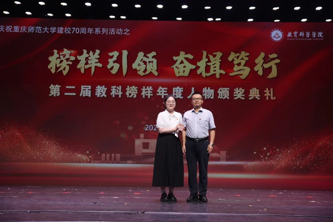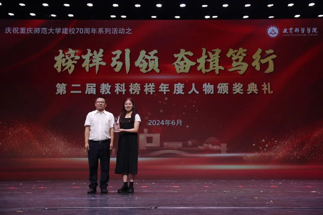 在本届教科榜样年度人物颁奖典礼中,我看到榜样教师们或勤勉敬业,或挺膺担当,展现了无私奉献、心中无我的崇高精神,她们的行为和精神成为指引我们前行的灯塔。孟景老师桃李争妍,矫矫不群,探究前沿,求科学真理;榜样同学更在我们身边,魏子龙同学云程发轫,踵事增华,求学圆梦征程中,他以满腔热忱和坚韧毅力砥志研思,攻读博士续写追梦新篇。