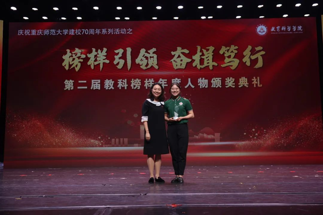 年轻的我们坐在台下,由衷地为台上八位教科榜样鼓掌。他们做一片绿叶,一缕清风,一束阳光,率先垂范,作出表率,感染着每一位教科人。他们来自不同的领域,无论是潜心学术探索的孟景教授;或是始终牢固树立以人为本、德育为先思想的梁玉音老师;还是用坚毅和执着书写奋斗篇章的张雨童学姐。他们都有一个共同点,那就是对梦想的执着追求和对知识的渴望。教科榜样们身体力行地向我们讲述:人生海海,有“荆棘遍野、步履蹒跚”的艰辛,就会有〝一马平州、驰骋千里”的快意。唯有热爱,才会让你在顺境中不骄不躁,在逆境中坚韧不拔,器宇轩昂地奔向未来!每一个教科人都在此次盛典中得到成长,通过榜样的力量一代又一代传递着爱与希望!