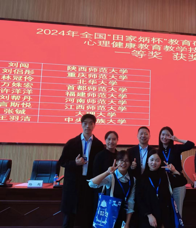 2023级心理健康教育专业硕士研究生刘侣彤荣获一等奖,曾玲惠和程志勇分获三等奖,李茜荣获优秀教学设计奖,指导教师胡朝兵教授荣获“优秀指导教师奖”。