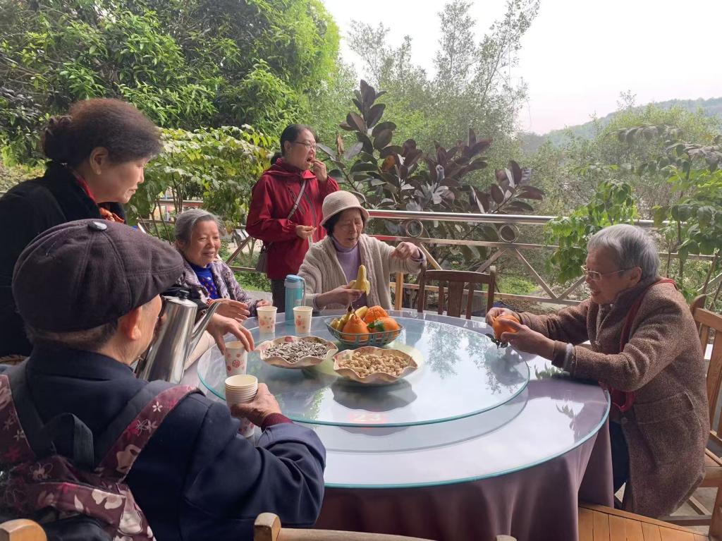 4月3日上午10点,虎峰山上阳光明媚、春意盎然。教师们陆续抵达桃花山庄,或在工会主席王婧老师的带领下结伴向山上进发。一路上大家谈笑风生,相互搀扶鼓励,或驻足观赏,或拍照留念,记录下这美好的春日光景。或老友们坐在庭院里,回忆往昔教书育人的岁月,分享退休后的生活趣事,有人谈起孙辈的成长,有人交流养生心得。欢声笑语回荡在山间,仿佛回到了当年共事时的温馨时光。