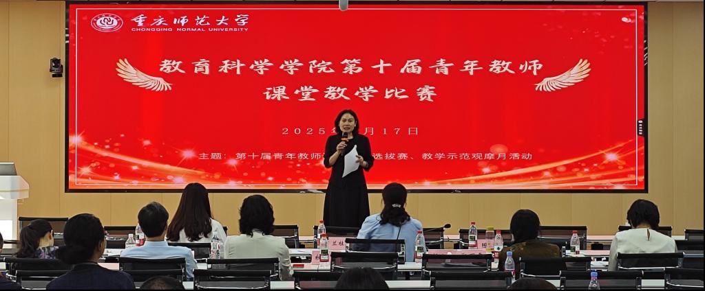 第十届青年教师课堂教学大赛在砺志楼T2310会议室举行。学院党委书记罗庆、院长朱桂琴及全体任课教师到场观摩。大赛特邀马克思主义学院兰桂萍教授、外国语学院陈君教授、新闻与传媒学院杨帆教授担任评委,彭文波副院长主持赛事。
