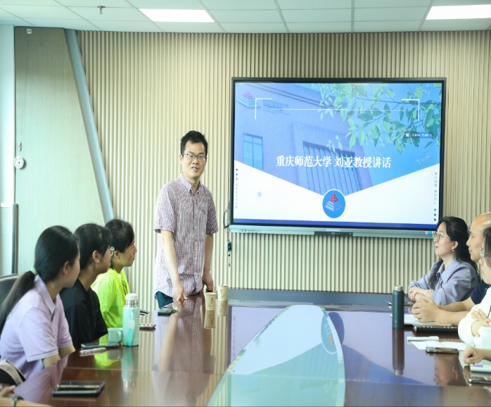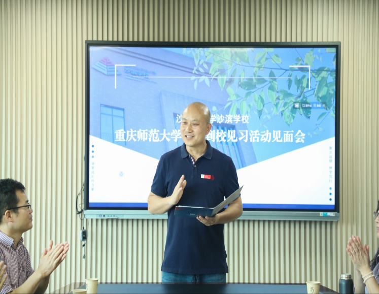 心理系主任刘亚、学生指导老师洪显利与沙坪坝小学沙滨学校校领导交流