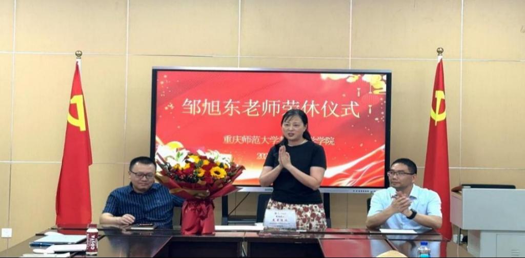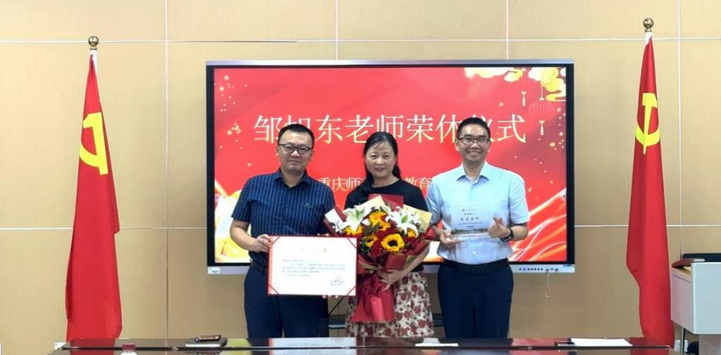 在2421教室为邹旭东老师举行荣休交流会。学院领导、学前教育系教师代表齐聚一堂,通过影像追忆、师生献礼与深情寄语,致敬邹老师数十载躬耕教坛的赤子初心。