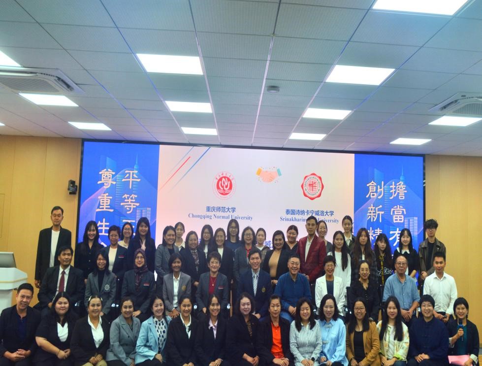 2025年10月13日,泰国诗纳卡宁威洛大学研究生院院长Chatchai Ekpanyaskul及特殊教育专业师生30人来学院访问。国际交流与合作处副处长左金隆、学院党委书记罗庆、院长朱桂琴、院长助理伍雪辉及特殊教育系师生代表参加交流会。会议由特教系副主任高晓慧主持。