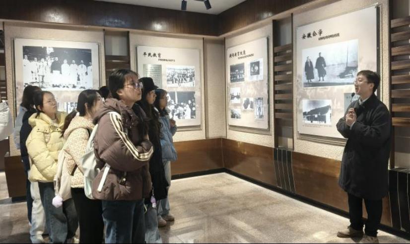 在陶行知先生纪念馆,六个主题展厅通过历史图片、手书信札、纪实影像等资料,系统梳理了陶行知先生的生平轨迹与教育实践。从推行平民教育到深耕乡村教育,从提出“教学做合一”理念到践行“捧着一颗心来,不带半根草去”的奉献精神,先生投身教育改革的赤子之心与魄力,让在场师生深受触动。