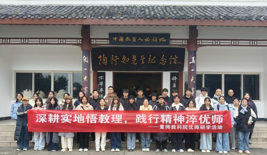 组织“优师计划”师范生,在副院长彭文波、教育系副系主任杨柳的带队下,赴重庆市合川区陶行知先生纪念馆开展主题研学活动。本次活动以“追寻教育先贤足迹、体悟陶行知教育思想”为核心,旨在帮助师范生筑牢从教信念、锤炼育人本领,为后续扎根基层教育奠定思想根基。