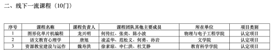 关于开展2022年校级一流课程认定及立项建设申报工作的通知》(重师教〔2022〕80号),经教师申请、所在学院推荐、教务处资格审查、专家评审,拟认定魏寿洪教授《资源教室建设与运作》为校级线下一流课程,拟立项建设瞿亚红副教授的《儿童文学》课程。