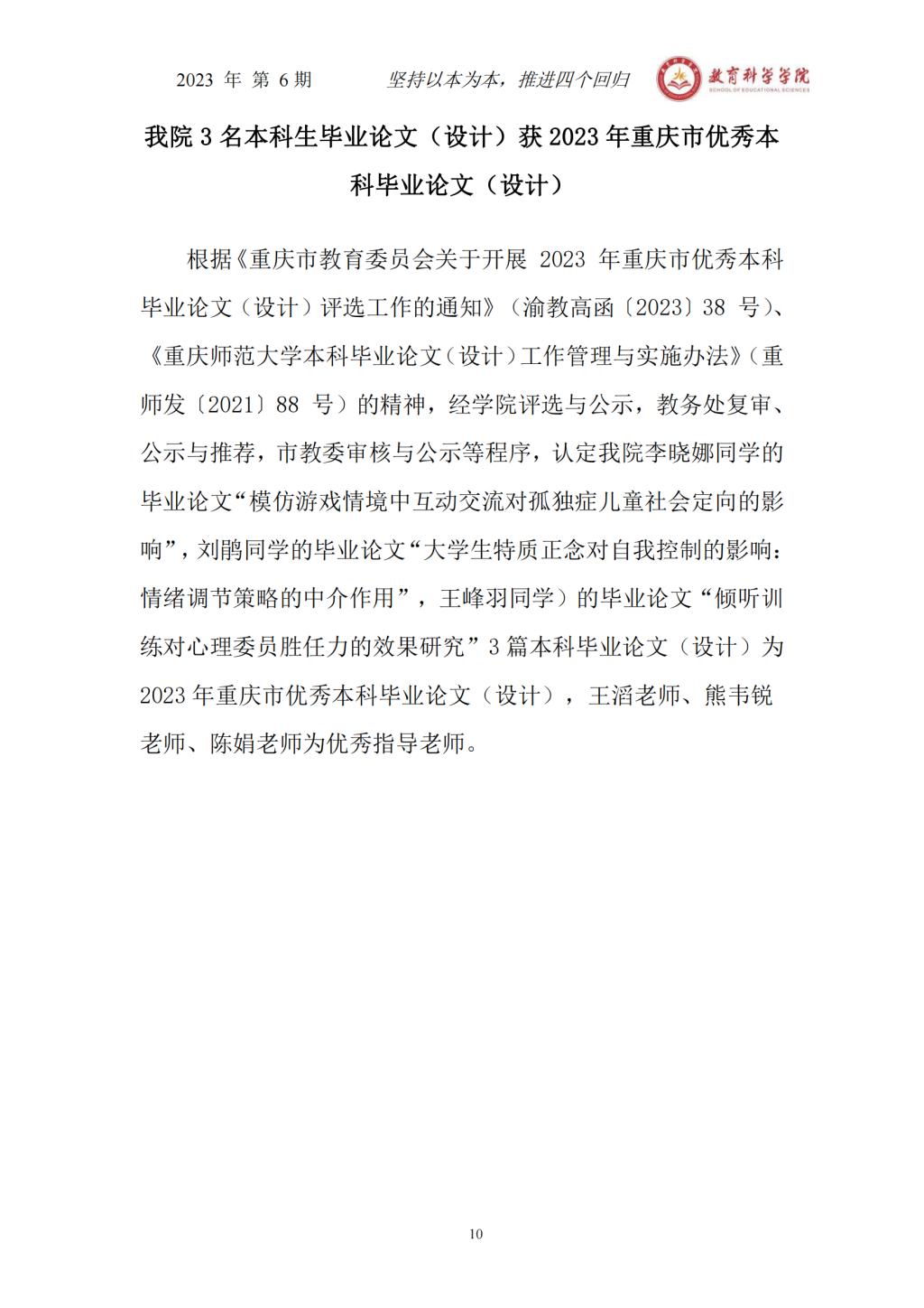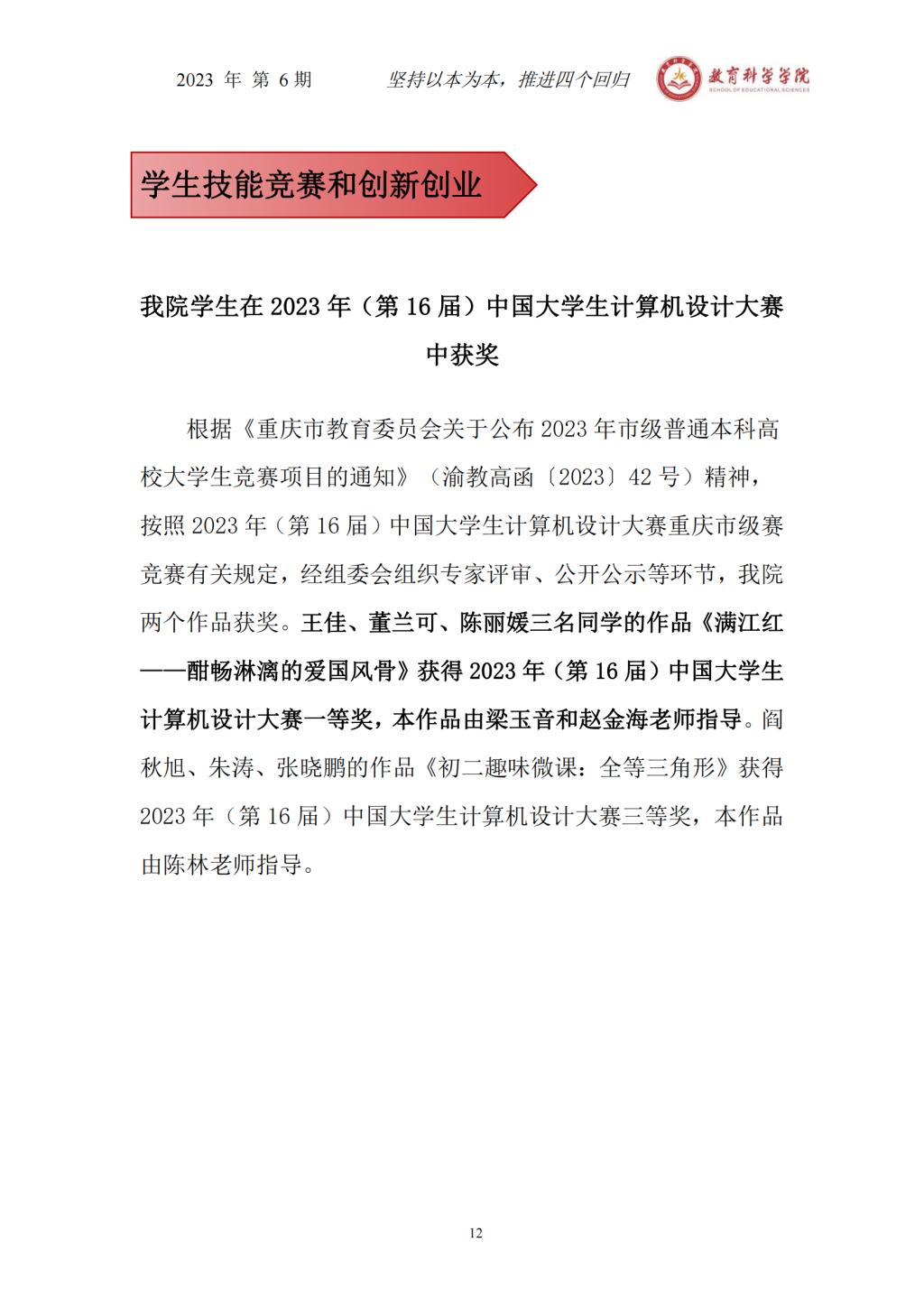 avcar 本科教学简报(2023年第6期)