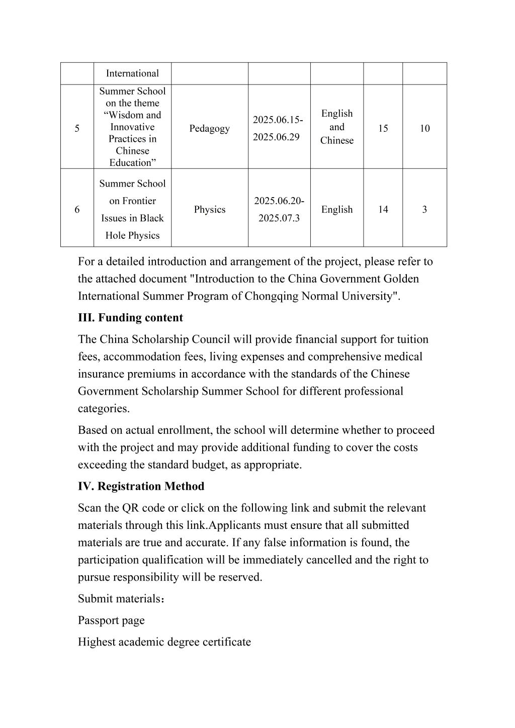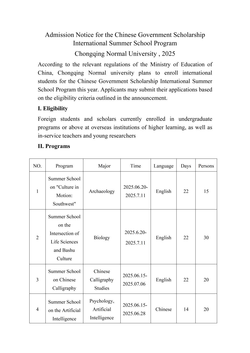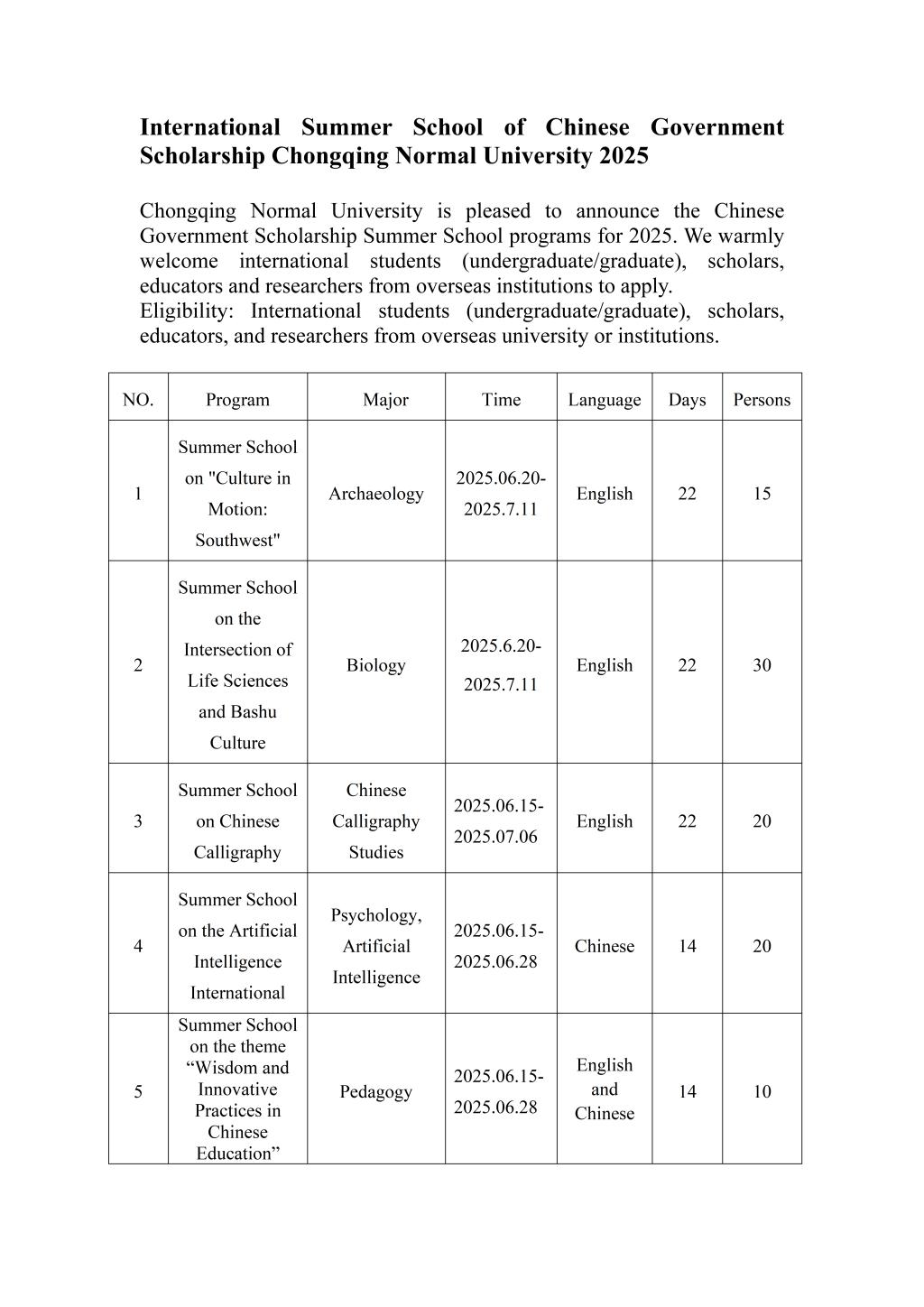 2025年avcar 中国政府奖学金国际暑期学校项目招生公告