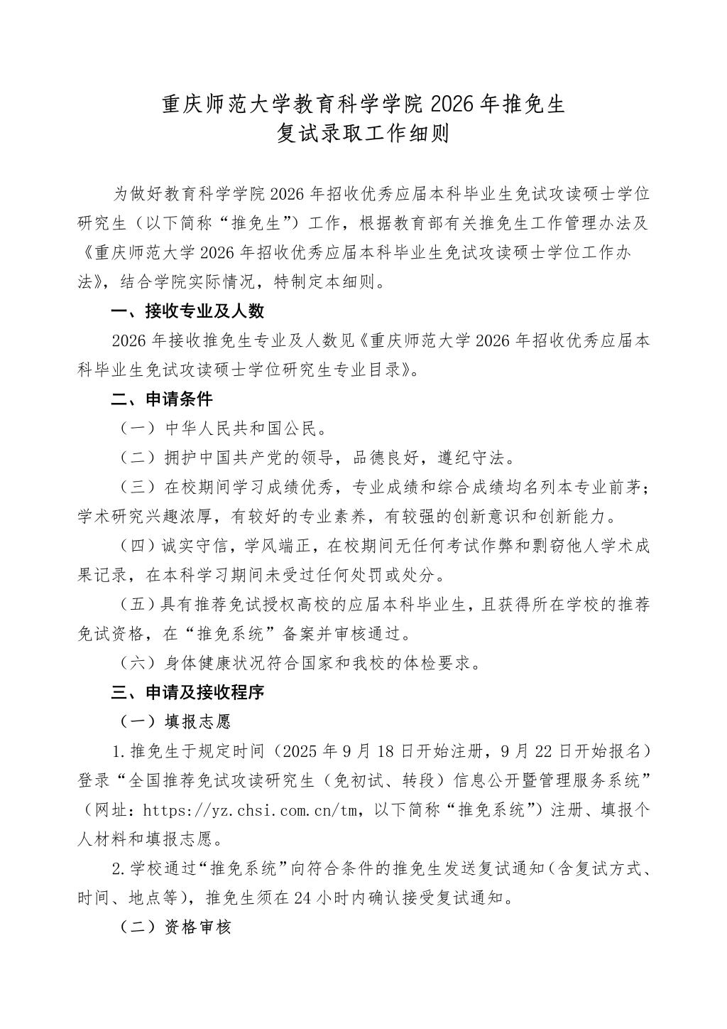 avcar 2026年推免生复试录取工作细则