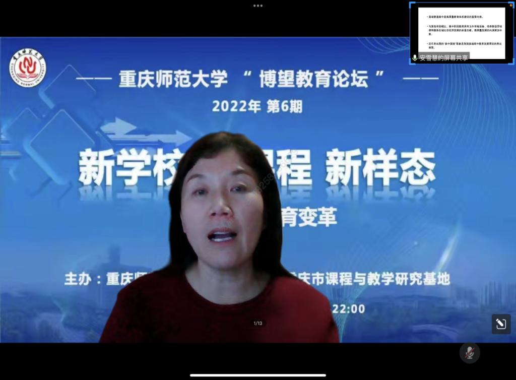 在新的时代背景下,高质量的基础教育如何构建,中小学校如何变革创新,这是当前全社会都十分关注的重要教育话题。2022年11月24日晚,为此,我校特举办第六期“博望教育论坛”,邀请三位全国知名的基础教育专家共话“新学校、新课程、新样态——基础教育变革”。本期论坛特邀重庆谢家湾小学校长刘希娅、西南大学附属中学副校长黄仕友、中国教育科学研究院区域教育研究所所长安雪慧教授莅临avcar