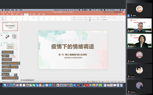 周巧副教授通过腾讯会议为大家做了题为《疫情下的情绪调适》的专题讲座。