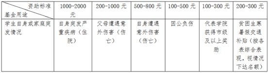 第九条 爱心基金使用范围及补助标准(见下表):
