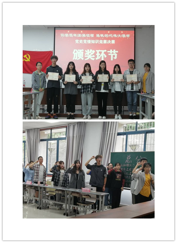 经过初赛的激烈角逐,6支参赛队伍晋级决赛。本轮比赛分为必答题和抢答题两个环节。比赛过程中,各组参赛选手们团结一致,攻克难题。对于党史的“重要考点”,主持人还进行了拓展扩充,进一步纵深了比赛的广度。比赛节奏紧张刺激,在抢答题环节,战况焦灼,现场气氛进入了白热化。参赛选手们抓住这最后的机会,积极为各组争取优势。最终,“快乐星球队”“闪闪红星队”“跃起动力队”获得三等奖;“红细胞队”“应心小分队”获得二等奖;“新青年队”荣获一等奖。。