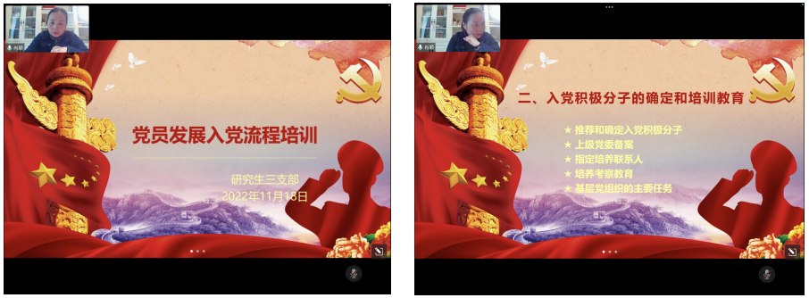 研究生三支部开展入党积极分子“党员入党流程培训”,参加此次培训的有支部书记肖颖同志、部分学生党员及支部全体入党积极分子共27人,会议采取线上的方式进行。