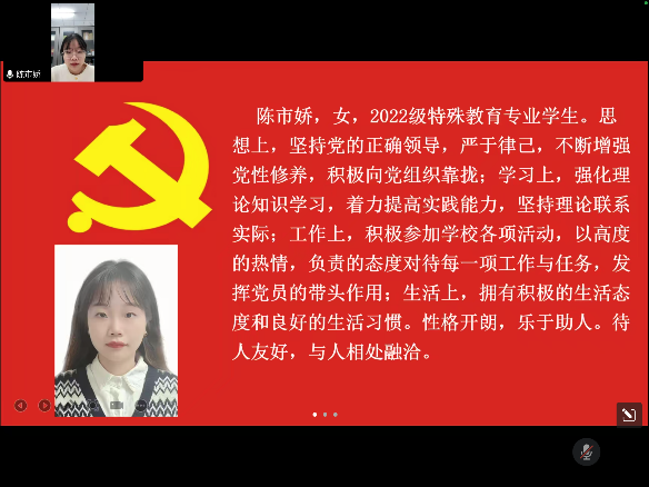 图一 陈市娇同志宣读转正申请书