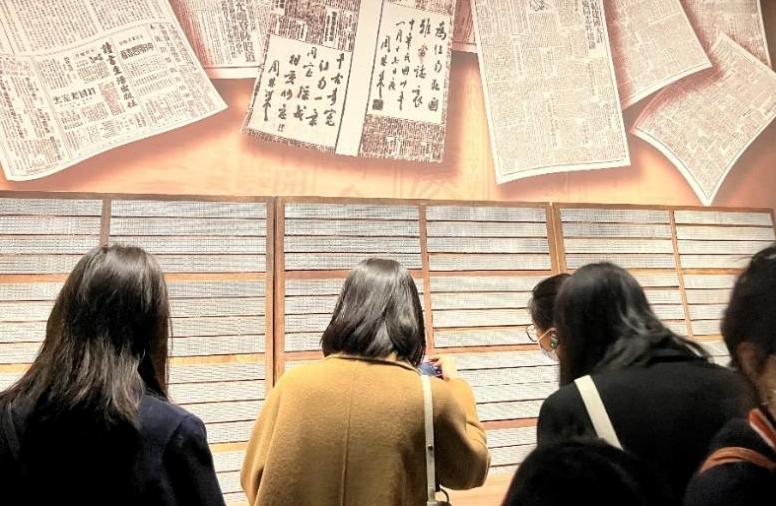 图为支部党员在展厅认真看活字印刷