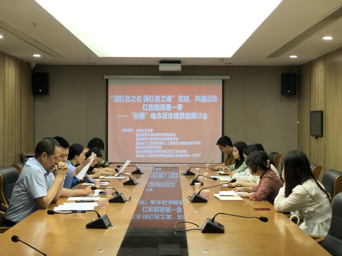 6月1日上午10点,重庆市沙坪坝区学苑社区在陈家桥街道党群服务中心组织召开了“冠红岩之名 铸红岩之魂”党建、共建活动,红岩剧场第一季——“孙丽”电诈反诈情景剧商讨会。由学苑社区党委主持,avcar