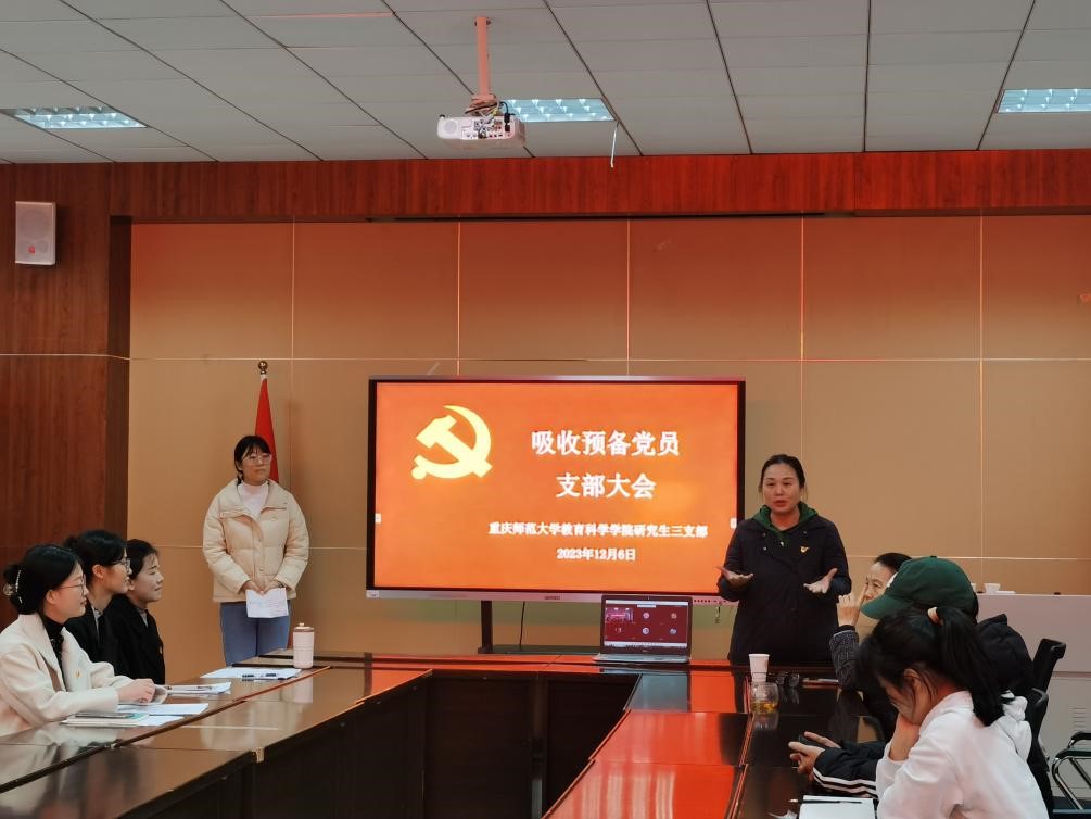 研究生三支部于特教楼2421召开吸收预备党员支部大会。本次大会的主要内容为讨论元振丽、傅红理、黄嘉欣3名同志是否发展为中共预备党员的问题。avcar