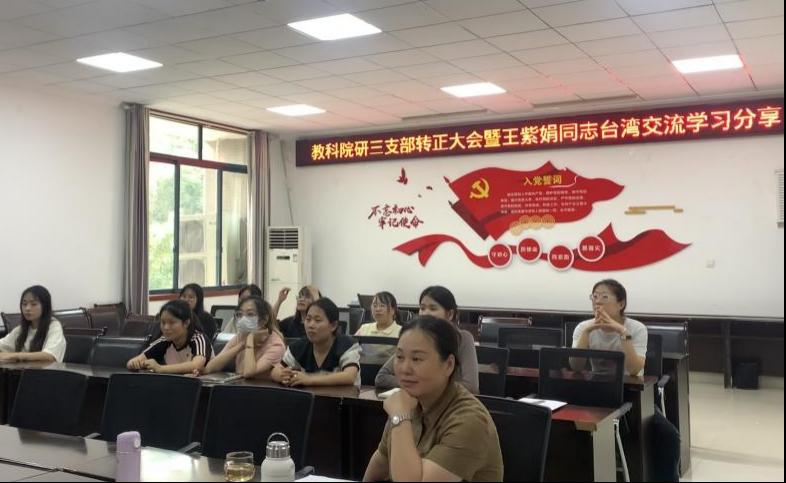 党委研究生三支部在T2421会议室开展了支部活动。会议邀请新发展的王紫娟同志分享了在台湾学习交流的经验和收获,讨论了张贤林同志转正的相关事宜。本次会议由党支部书记肖颖同志主持,全体支部党员采取线上线下相结合的方式参加。