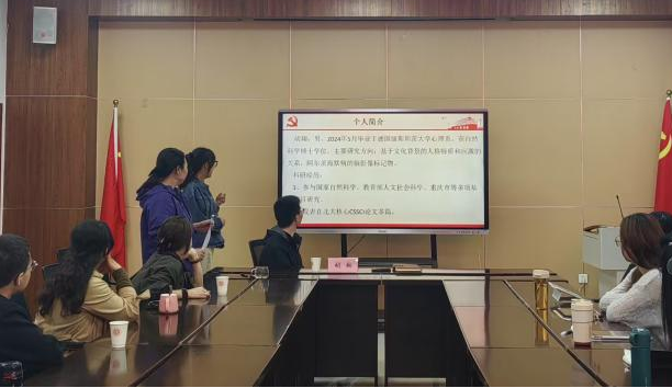 新引进的优秀海外博士胡翔老师与现场党员同志们分享了科研经验和求学心得。他结合自身经历,为支部党员提供了实用建议,帮助大家梳理了读博申请过程中的关键环节与应对策略。胡老师还分享了在德国留学期间的学业与生活体验,个人自主性和意志力得到充分锻炼。